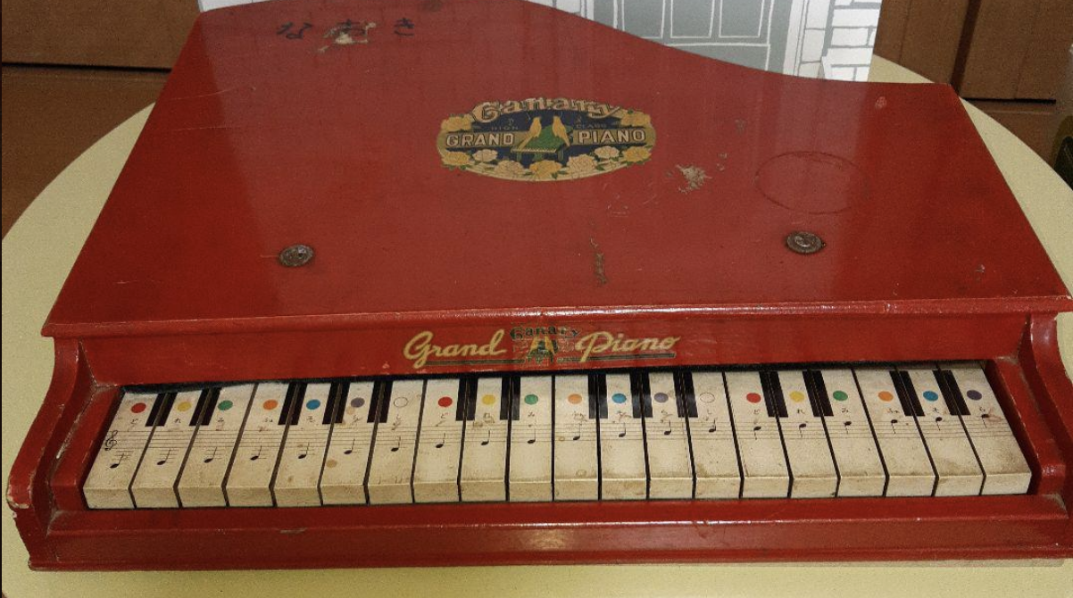 爸爸送我的礼物是一台红色的玩具小钢琴。钢琴不大,小孩子就可以抱走。大概有20个琴键,很多简单的儿歌都可以弹了。钢琴好像是日本货,反正别看身体小,声音清脆动听,颜值也超高。